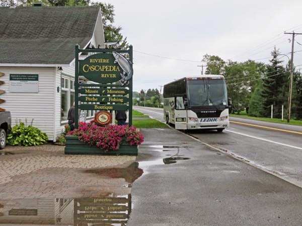 Most of the day was spent in the bus. Through Rimouski and along the Matapedia valley the weather was socked in and the rain was heavy at times. Dense forest. There were several fishermen in canoes.